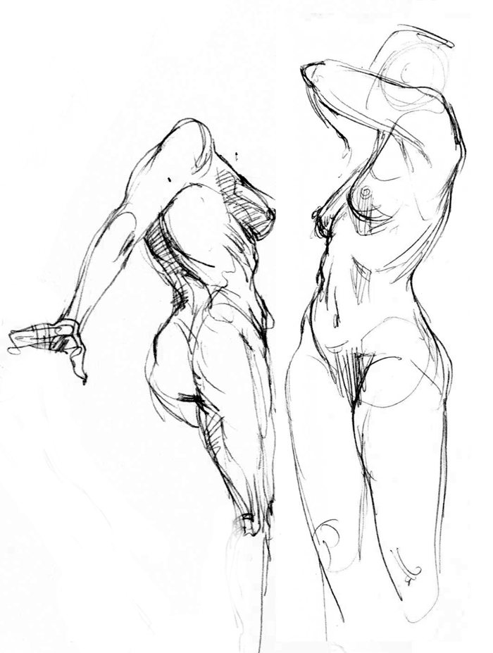 A gesture drawing is work of art defined by rapid execution. Typical situations involve an artist drawing a series of poses taken by a model in a short amount of time, often as little as 30 seconds, or as long as 2 minutes. Gesture drawing is often performed as a warm-up for a life drawing.